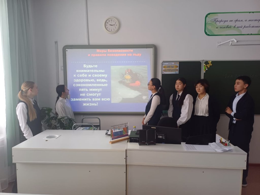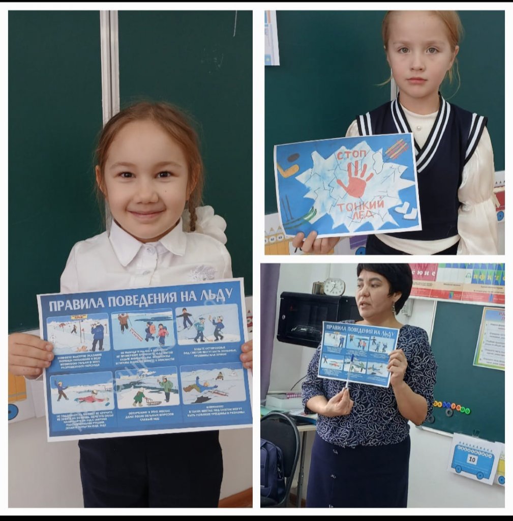 Сегодня в 6 «Б» классе прошёл классный час на тему «Безопасность на льду»