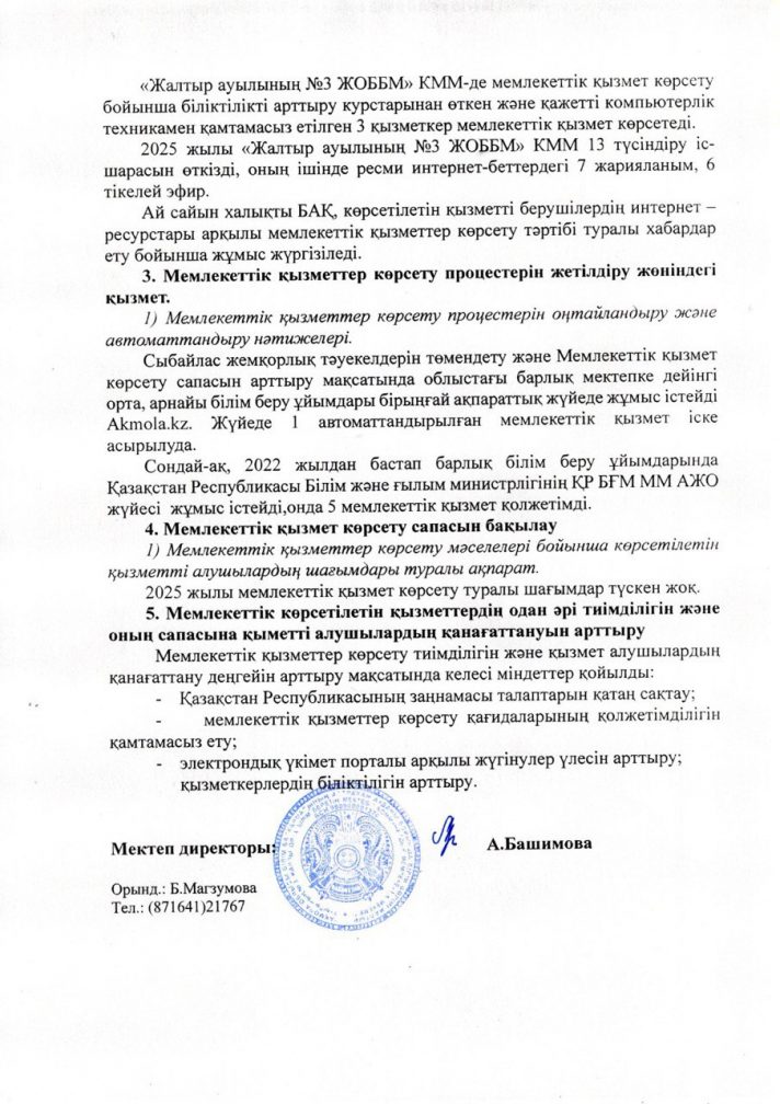 2025 жылға мемлекеттік қызметтер көрсету саласындағы қызмет туралы есеп