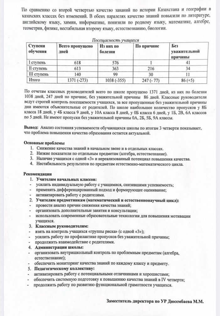2025-2026 оқу жылының 3 тоқсанындағы "Жалтыр ауылының №3 ООШ"КММ оқу қызметін талдау