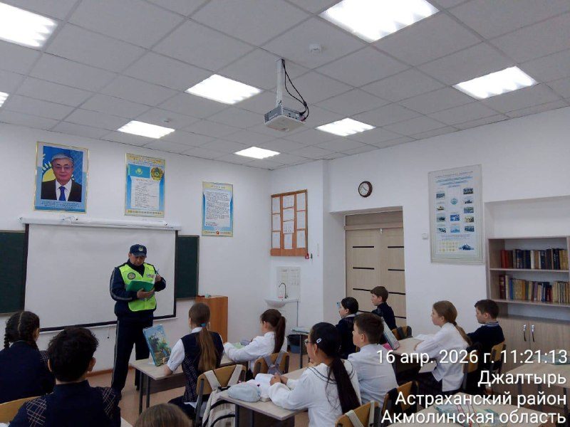 Сегодня, 16.04.2026 года, сотрудниками полиции ОПТ на ст. Жалтыр и и. о. начальника ОПТ на ст . Жалтыр младшим лейтенантом полиции Галымовым А. Е. была проведена лекция на тему «Железная дорога - зона повышенной опасности» .Также учащимся были разъяснены статьи 559 и 560 КоАПРК.