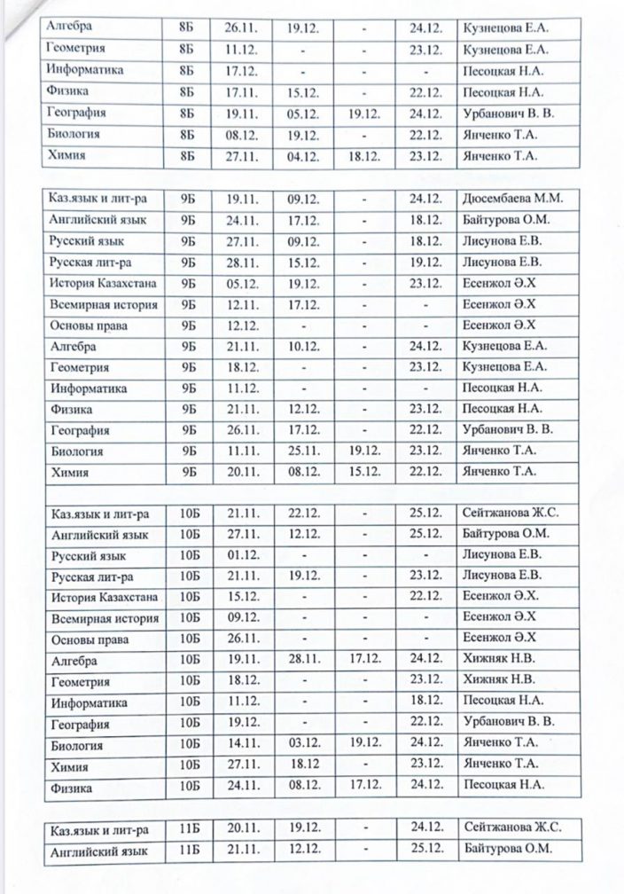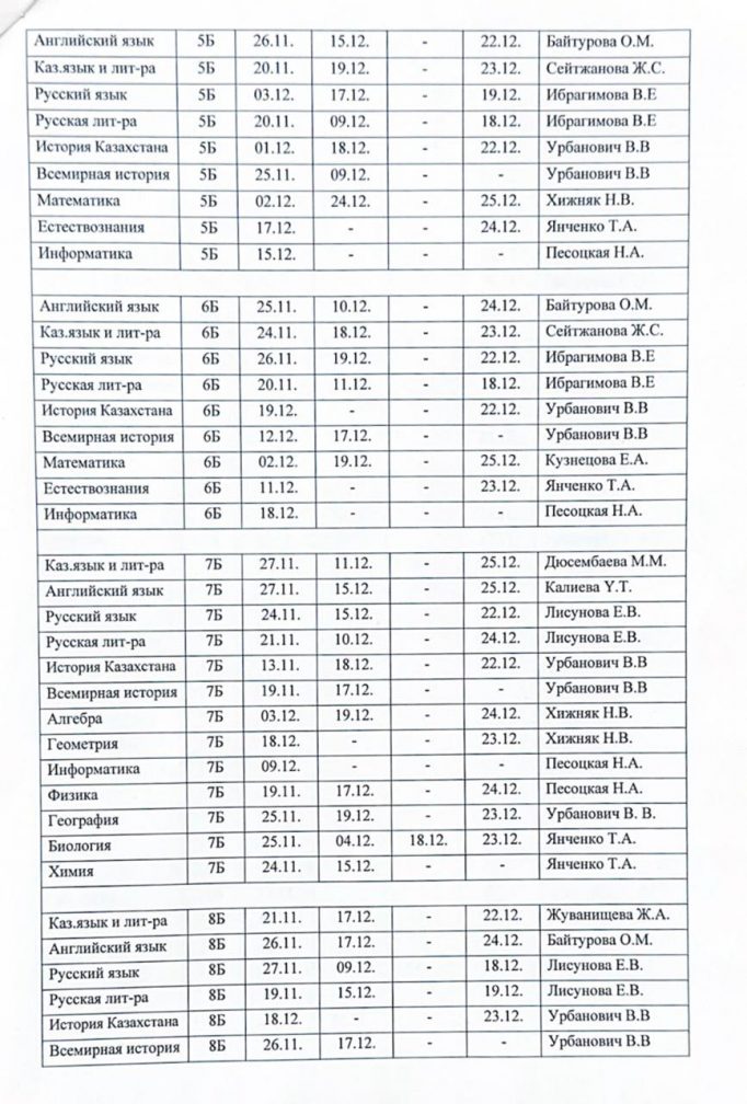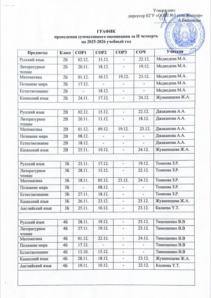 2025-2026 оқу жылына 2 тоқсан бойынша жиынтық бағалау кестесі