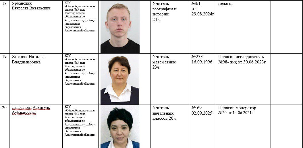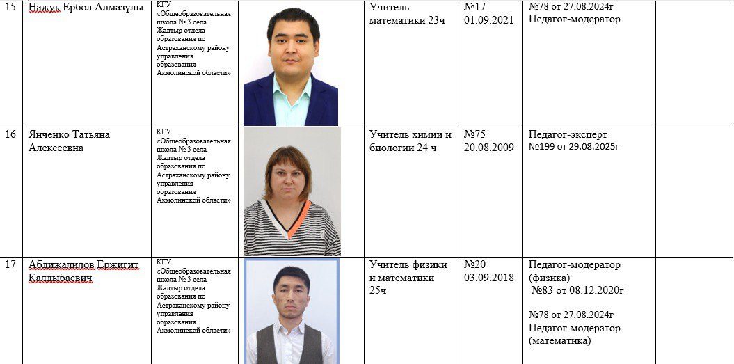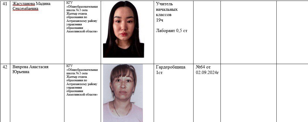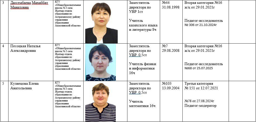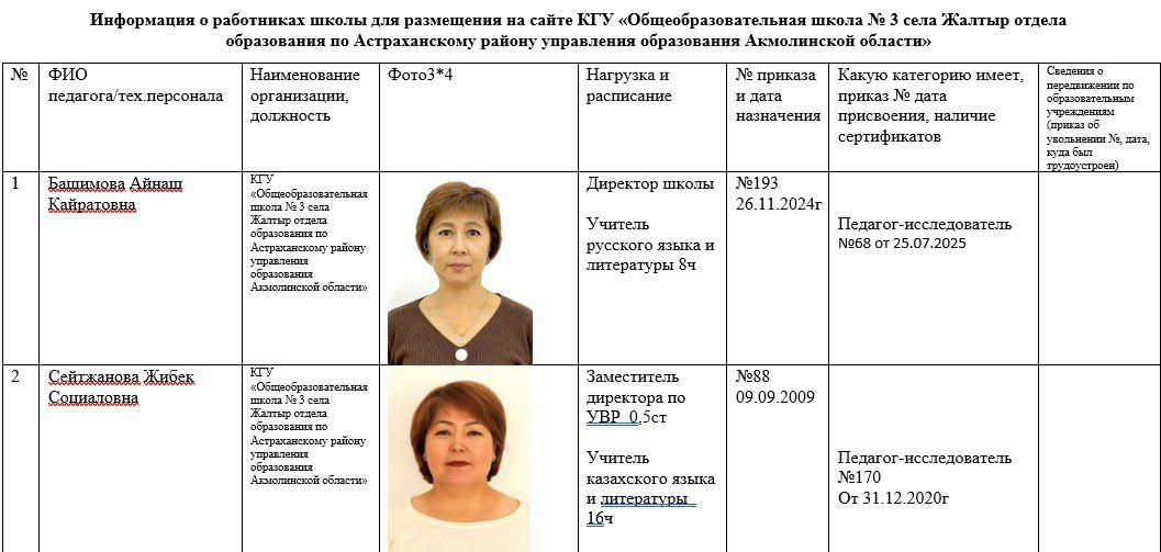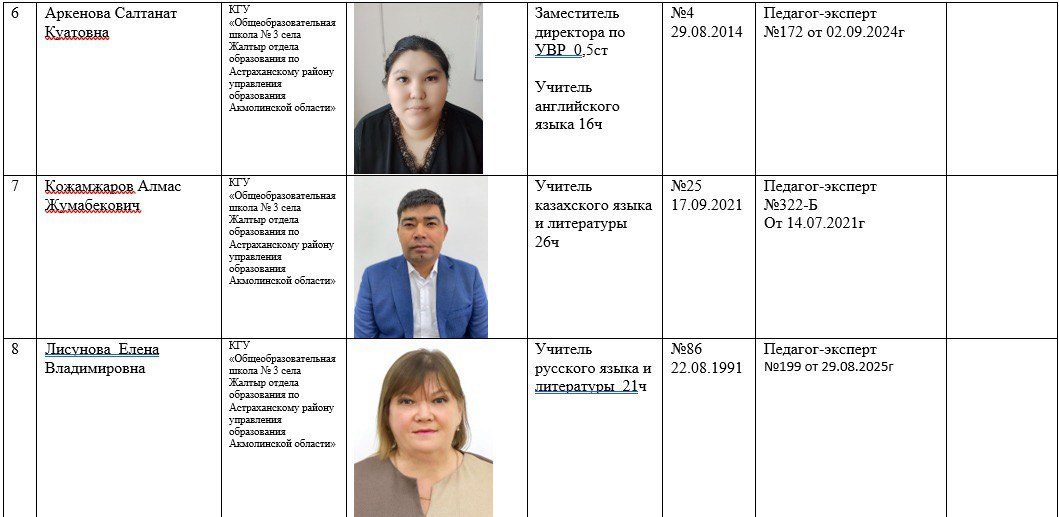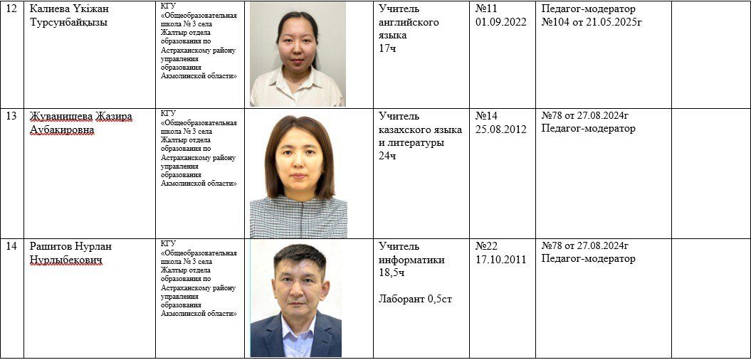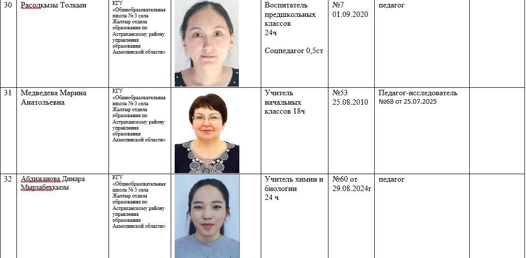 2025-2026 жылдарға арналған мектеп қызметкерлері туралы ақпарат