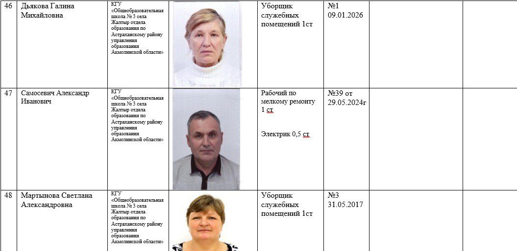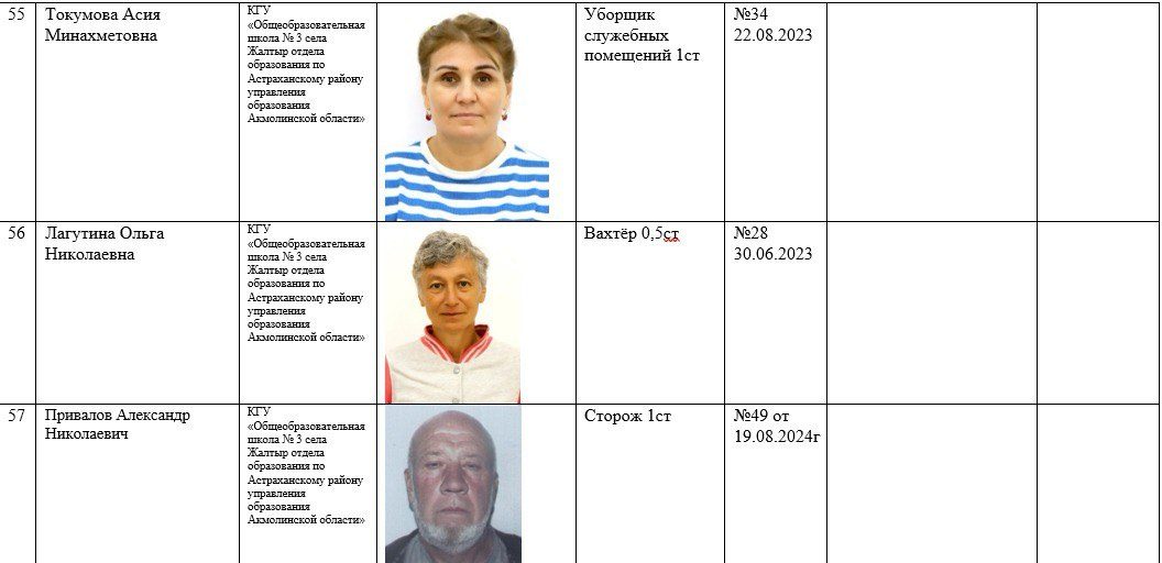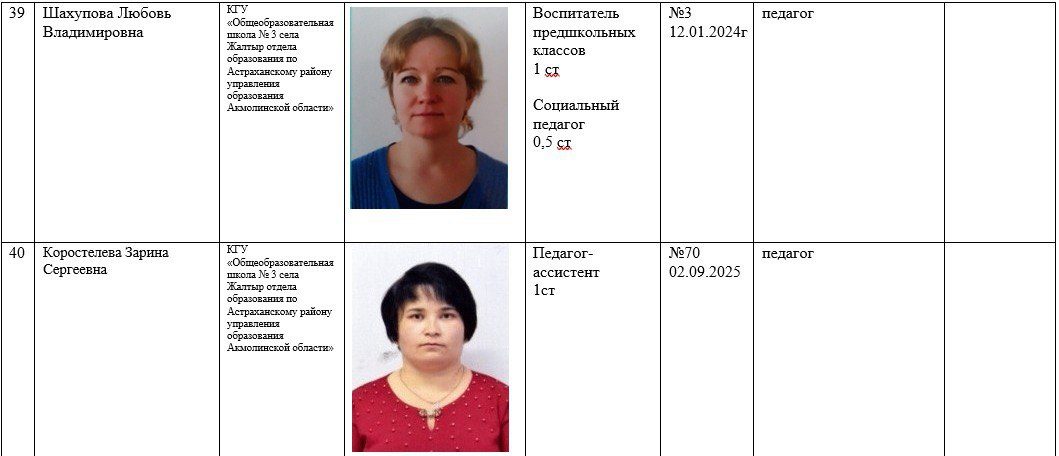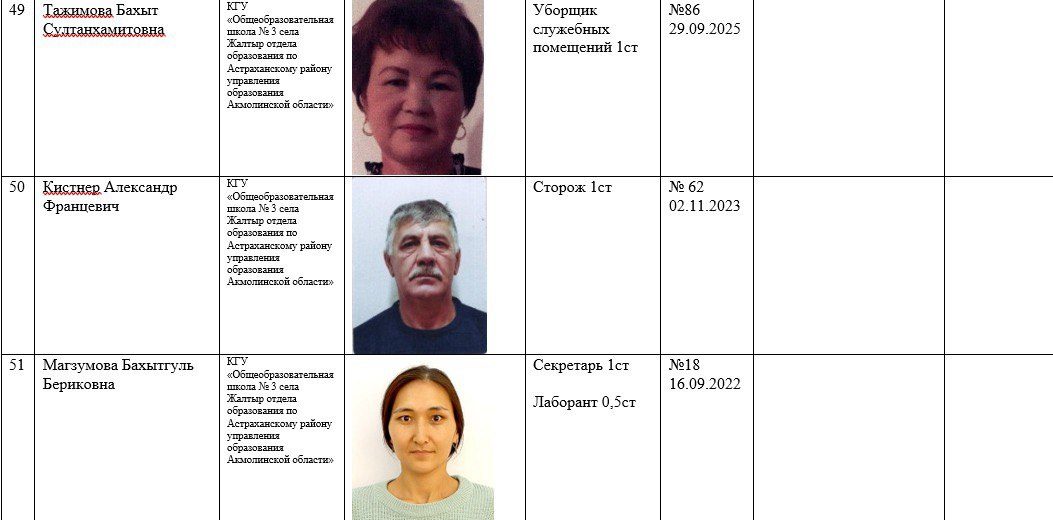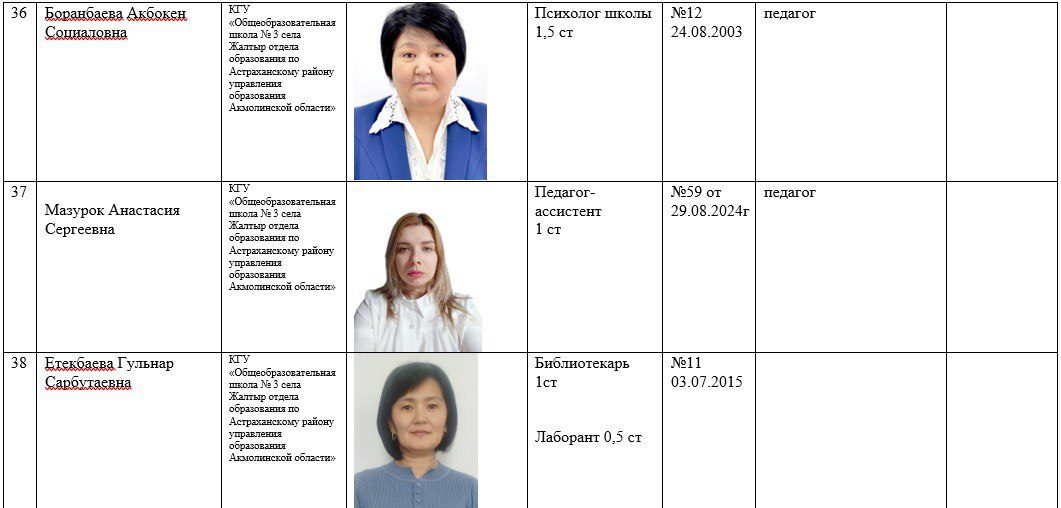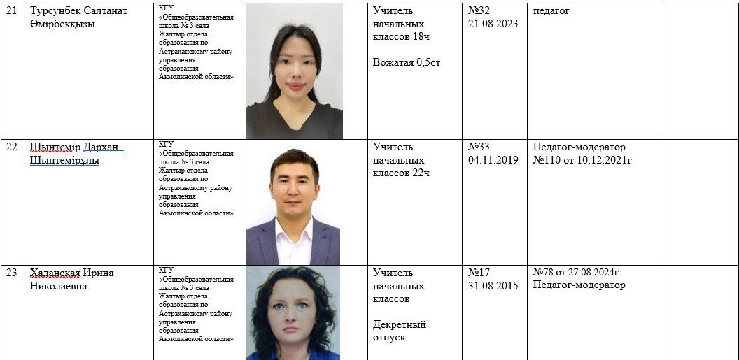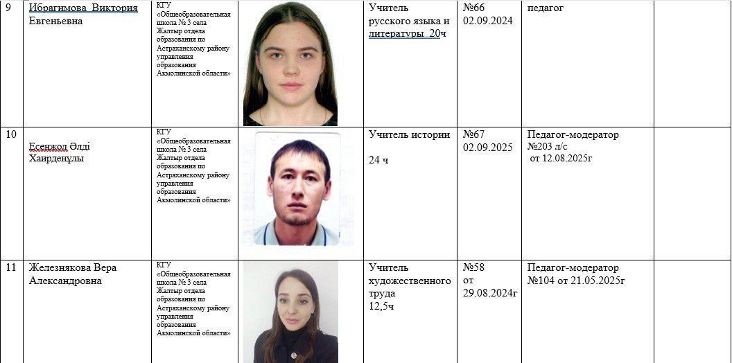2025-2026 жылдарға арналған мектеп қызметкерлері туралы ақпарат