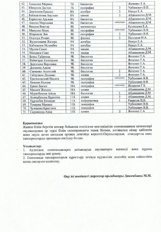 Мектепішілік олимпиадасының қорытындысы 2025-2026 оқу жылы