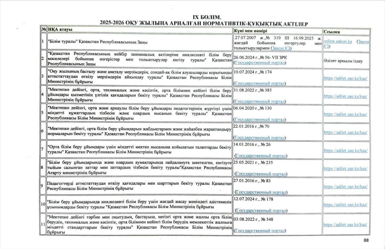 2025-2026 оқу жылына арналған нормативтік-құқықтық актілер
