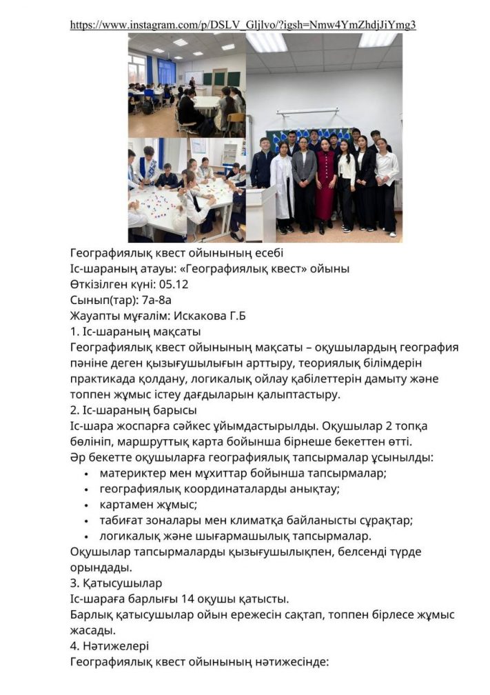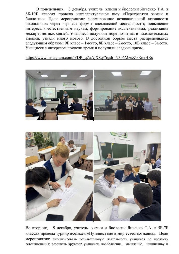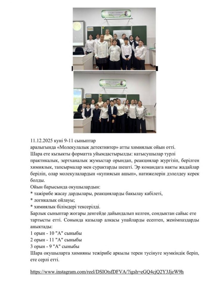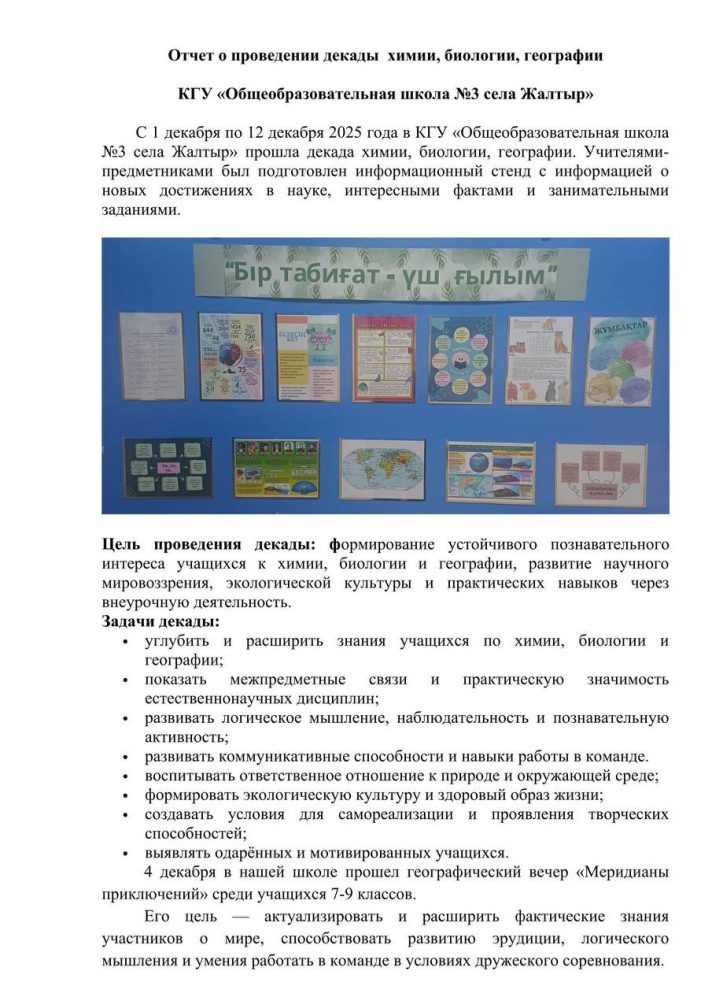 Химия, биология, география онкүндігін 2025-2026 жылдарға өткізу туралы есеп