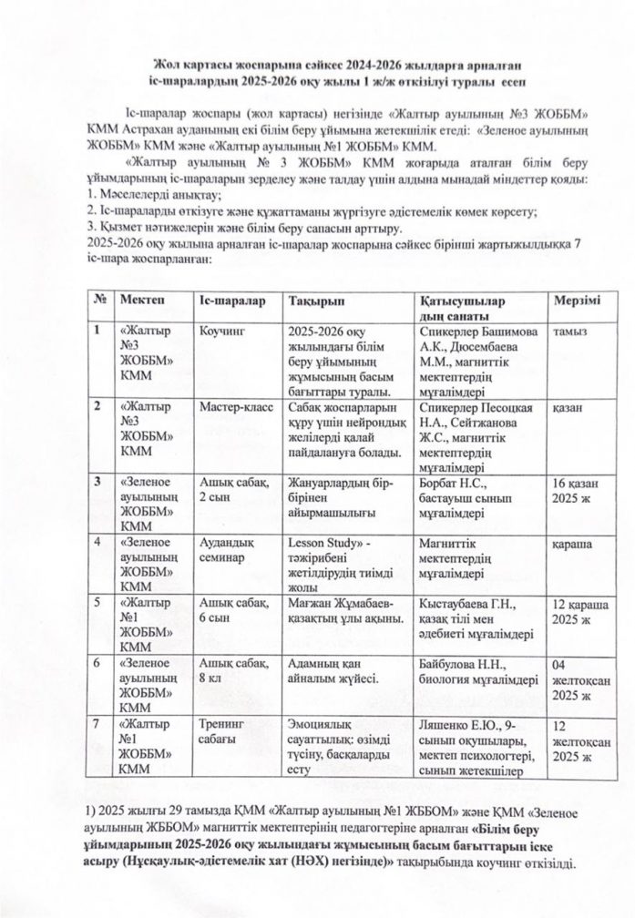 2025-2026 оқу жылының 1 жартыжылдығында өткізілген іс-шаралар туралы есеп