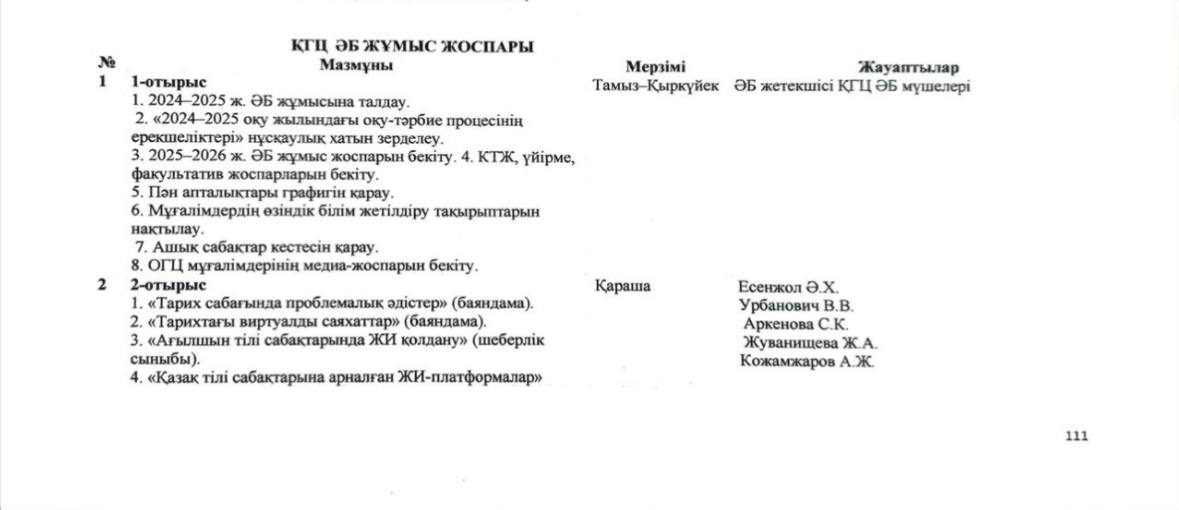 ҚГЦ ӘБ жоспары 2025-2026 жыл