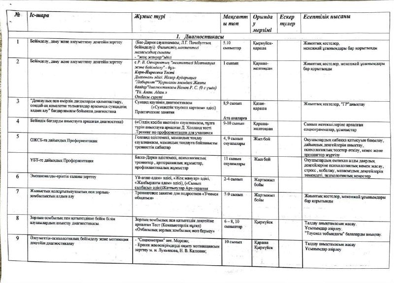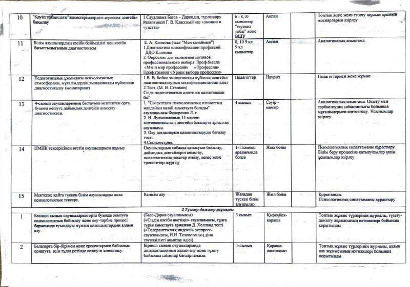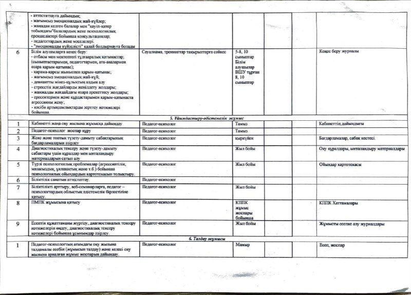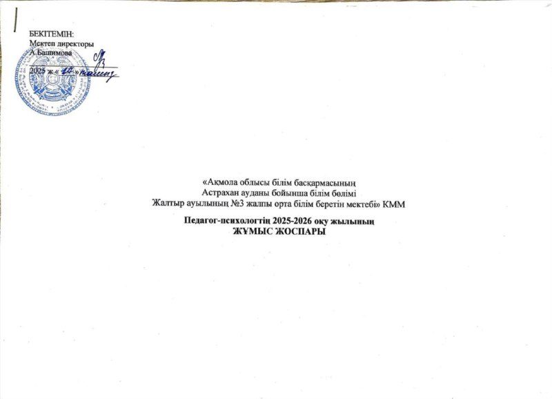 Педагог-психологтің 2025-2026 оқу жылының жұмыс жоспары