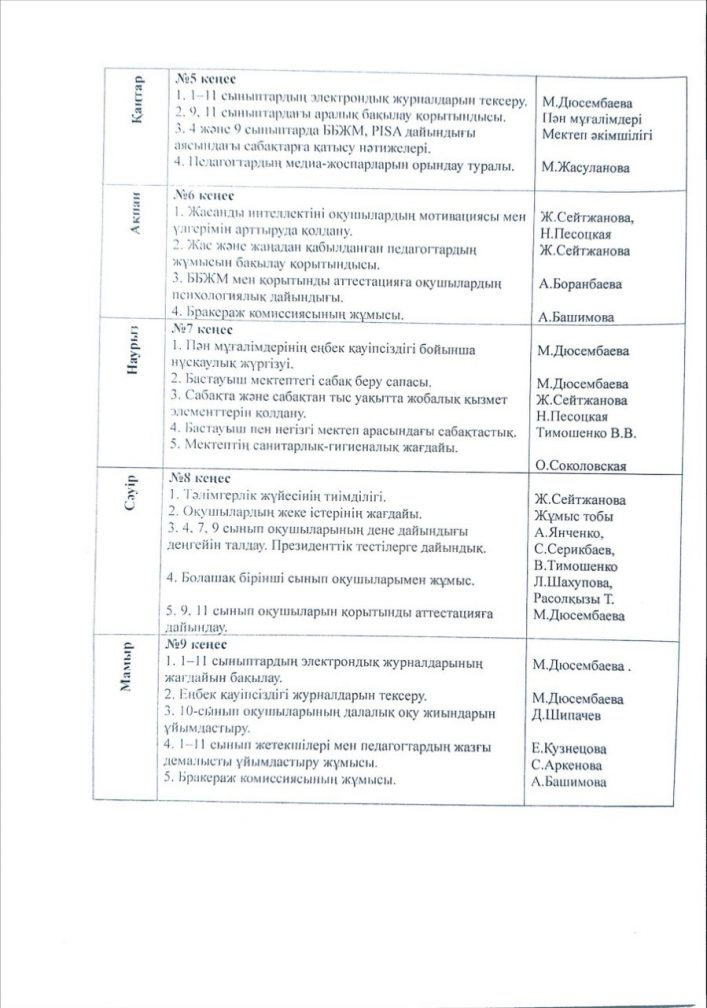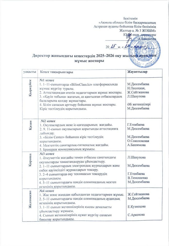 Директор жанындағы кеңестердің 2025-2026 оқу жылына арналған жұмыс жоспары