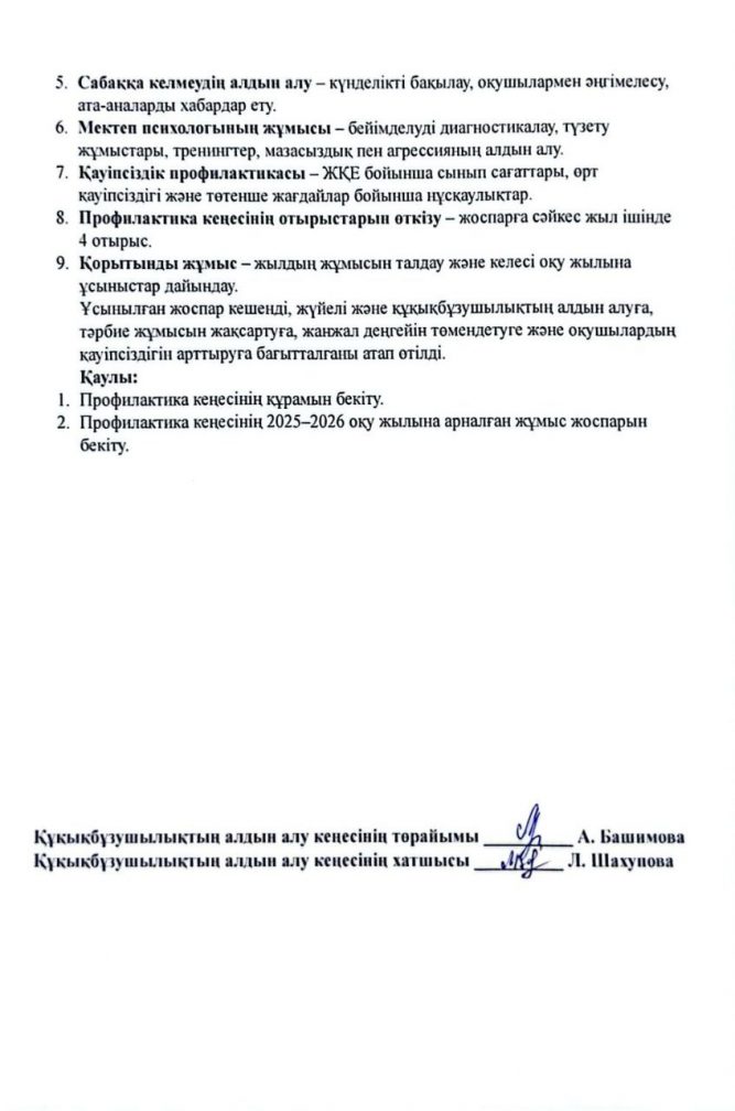 Хаттама №1 2025 жылғы 27 тамыз профилактика кеңесінің отырысы