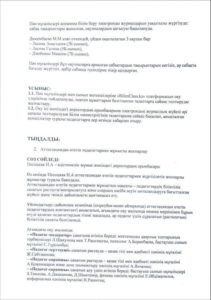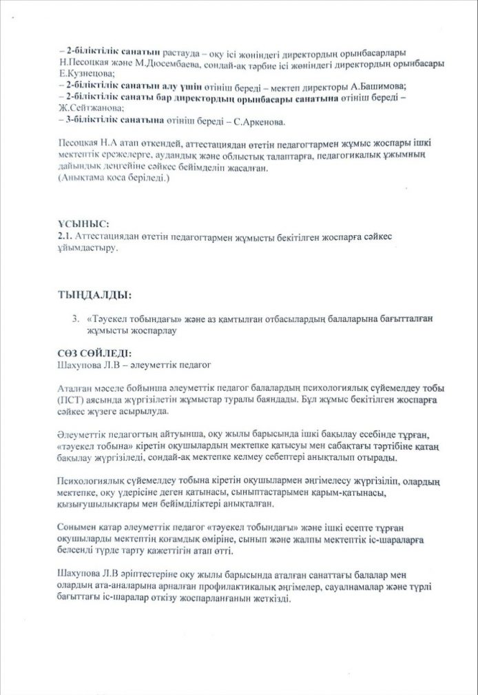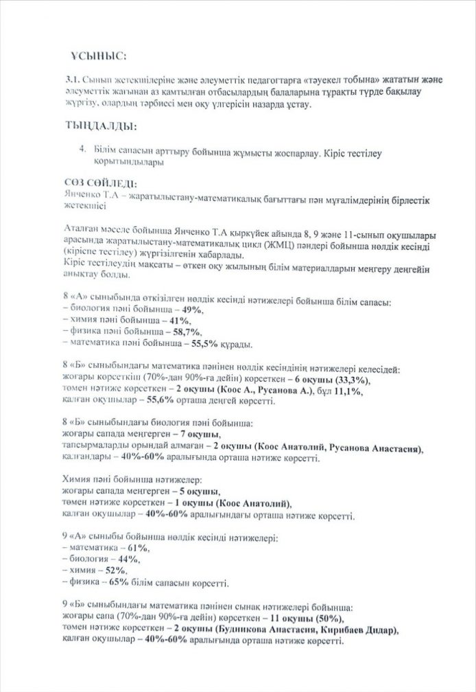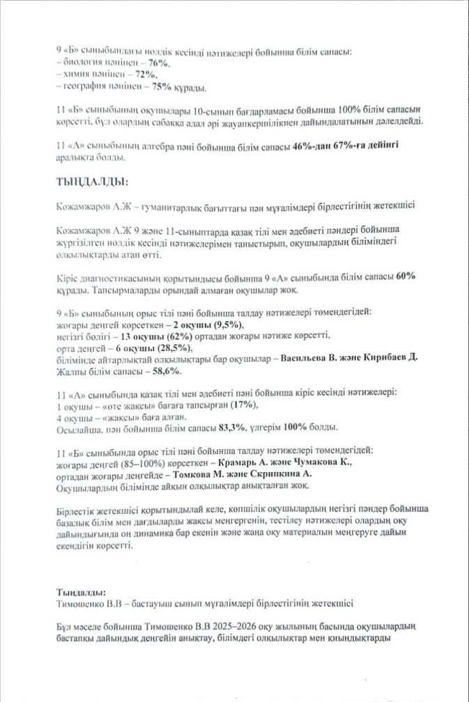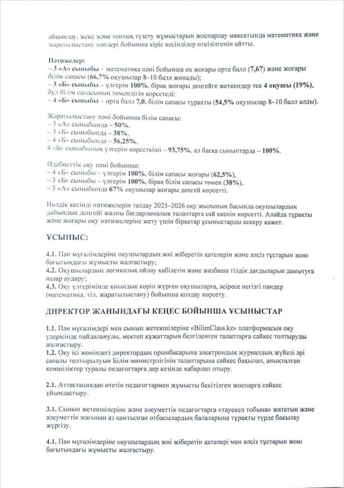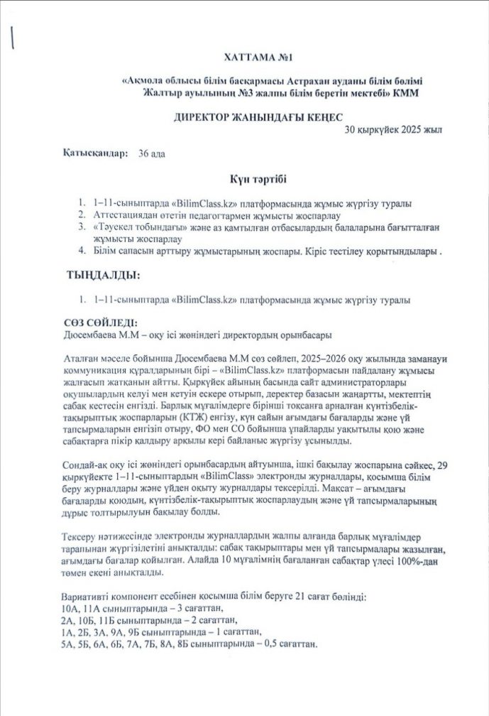 Хаттама №1 директор жанындағы кеңес 30 қыркүйек 2025 жыл