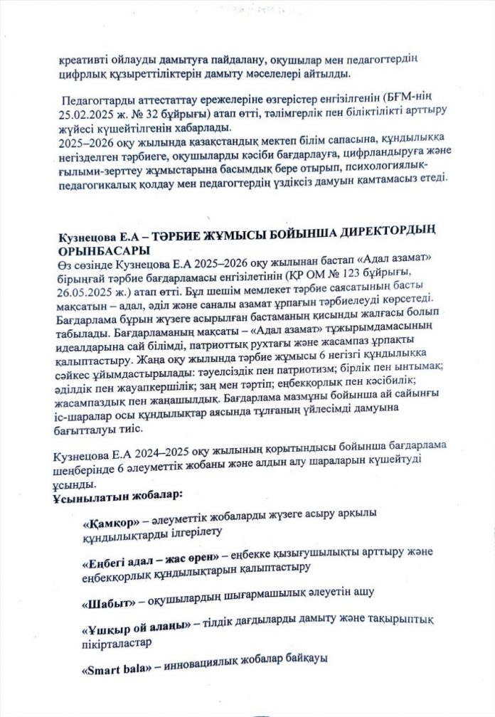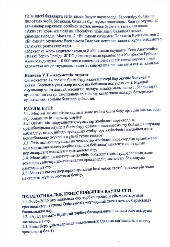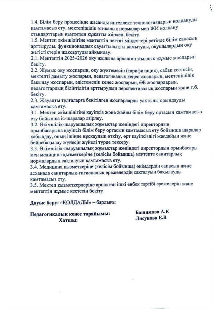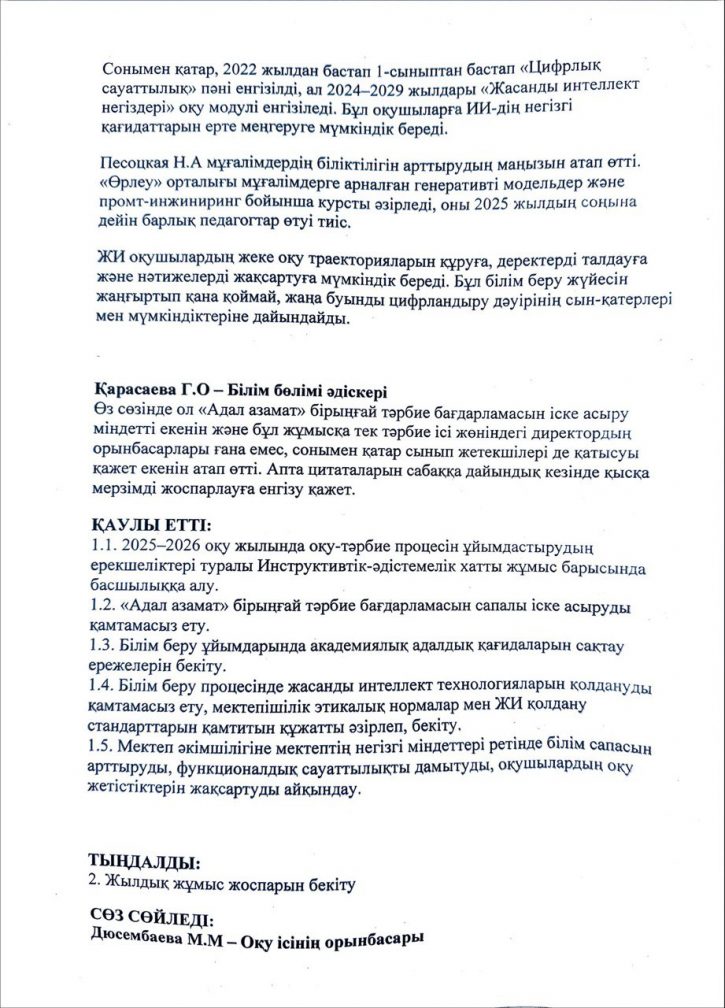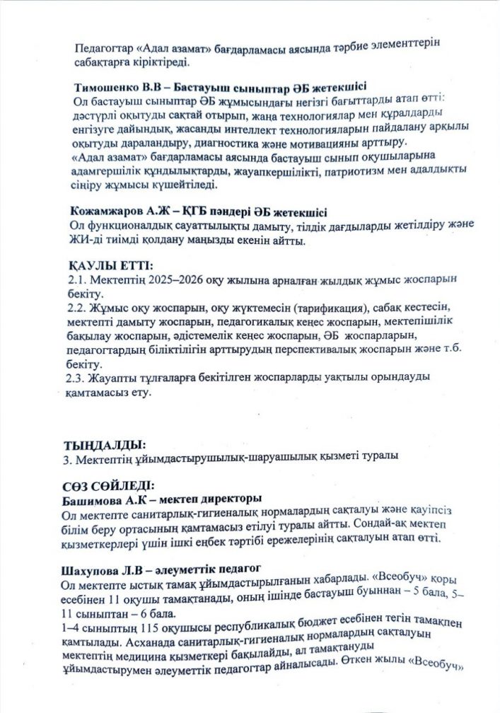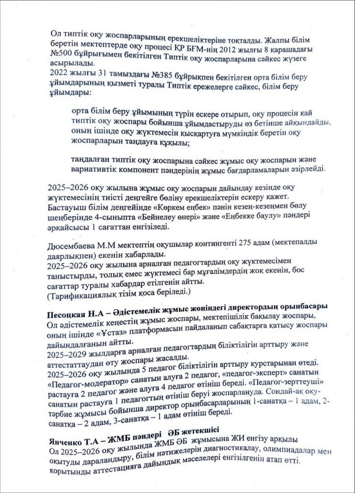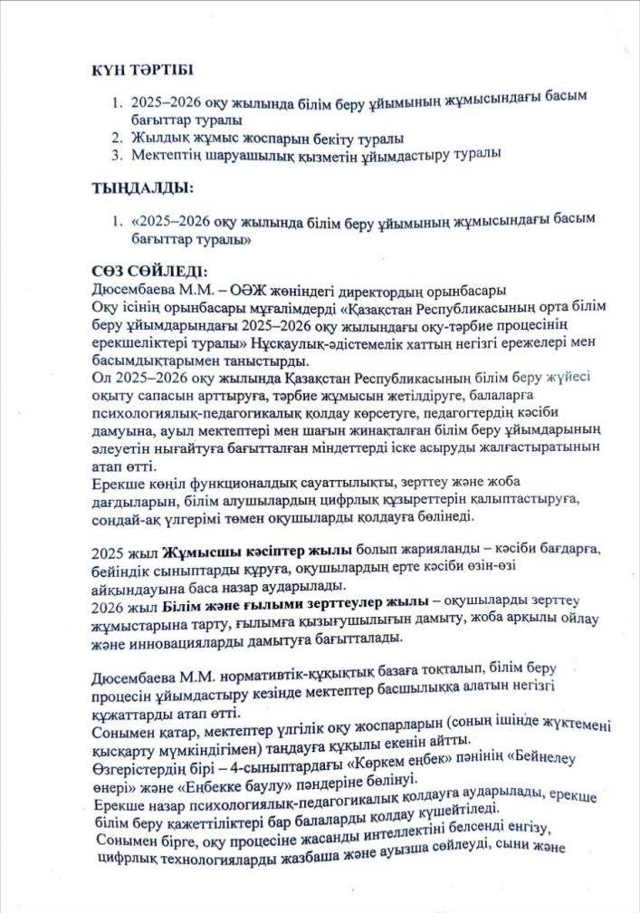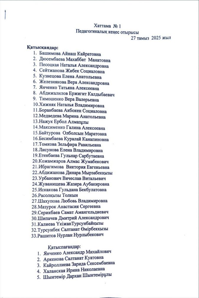 Хаттама №1 Педагогикалық кеңес отырысы 27 тамыз 2025жыл