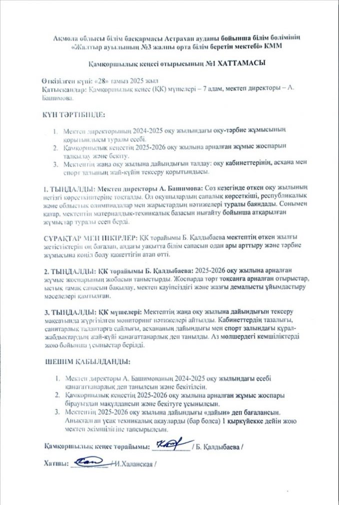 Қамқоршылық кеңесі отырысының №1 хаттамасы