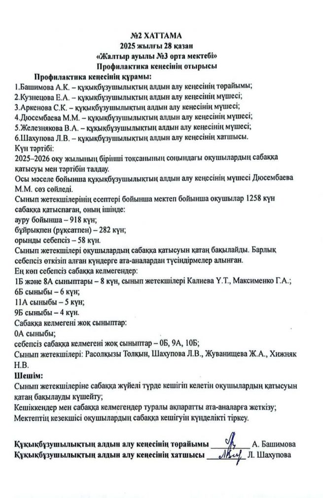 Хаттама №2 2025 жылғы 28 қазан профилактика кеңесінің отырысы