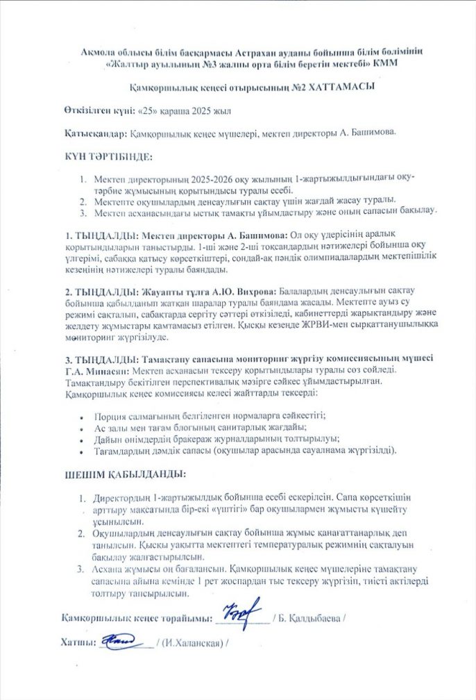 Қамқоршылық кеңесі отырысының №2 хаттамасы