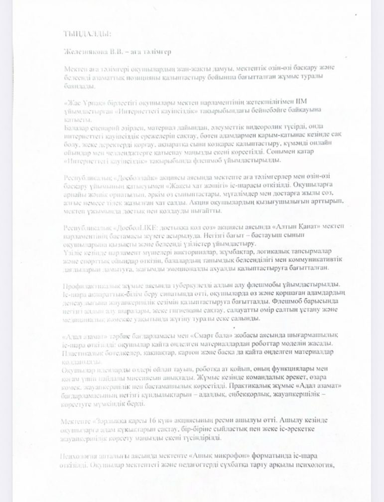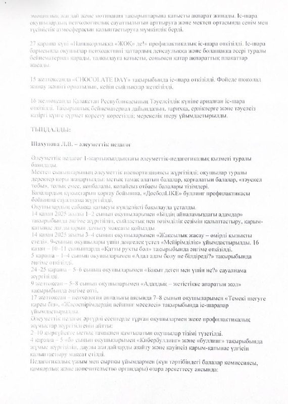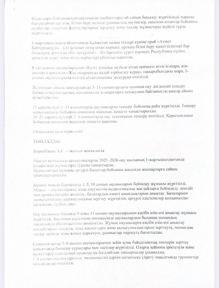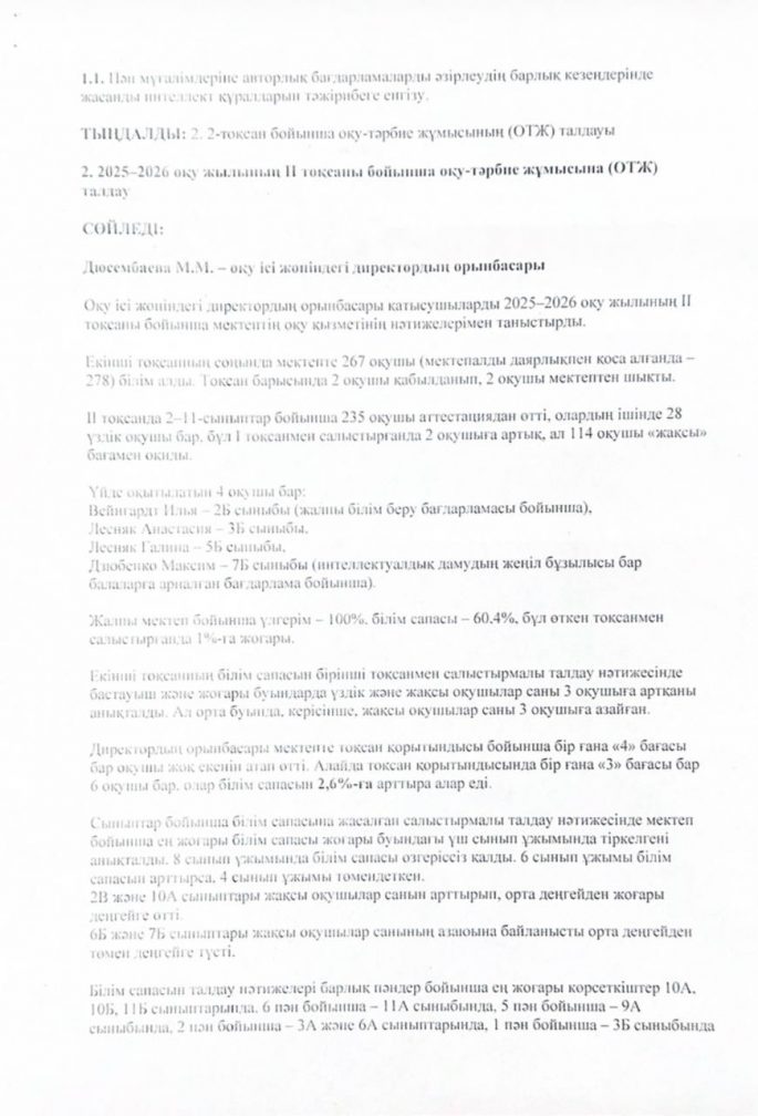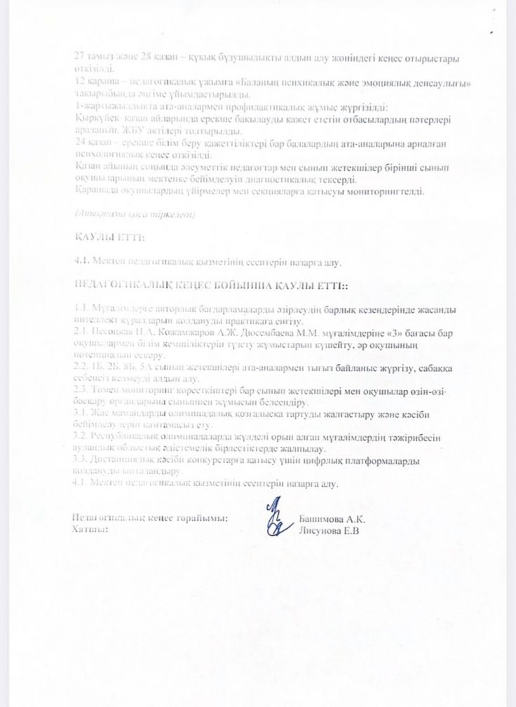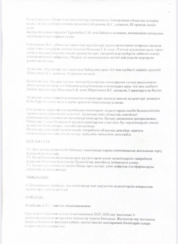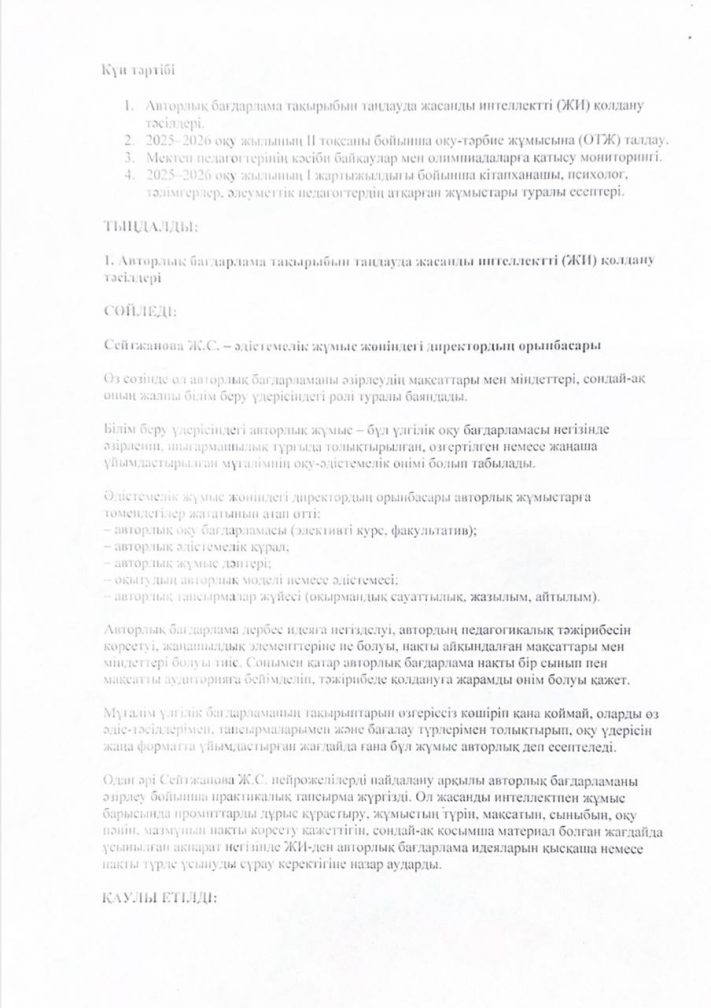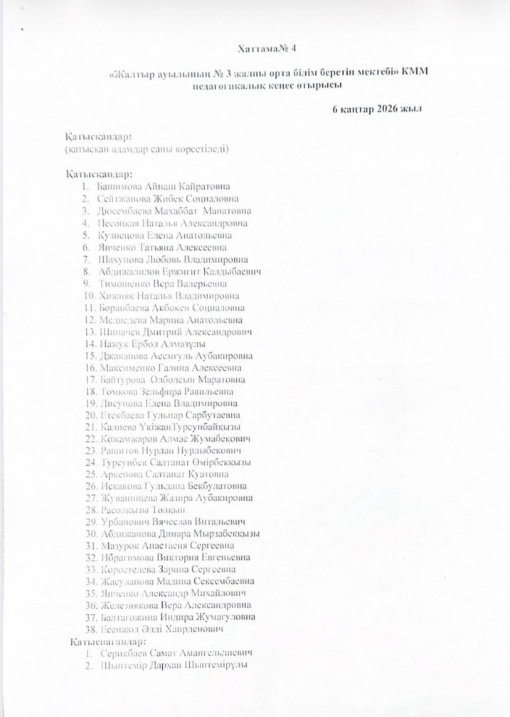 Хаттама №4 педагогикалық кеңес отырысының 6 қаңтар 2026 жылы