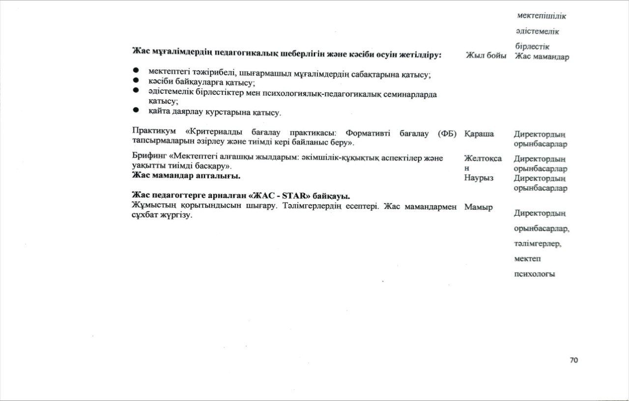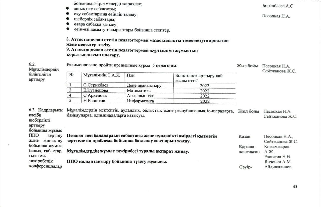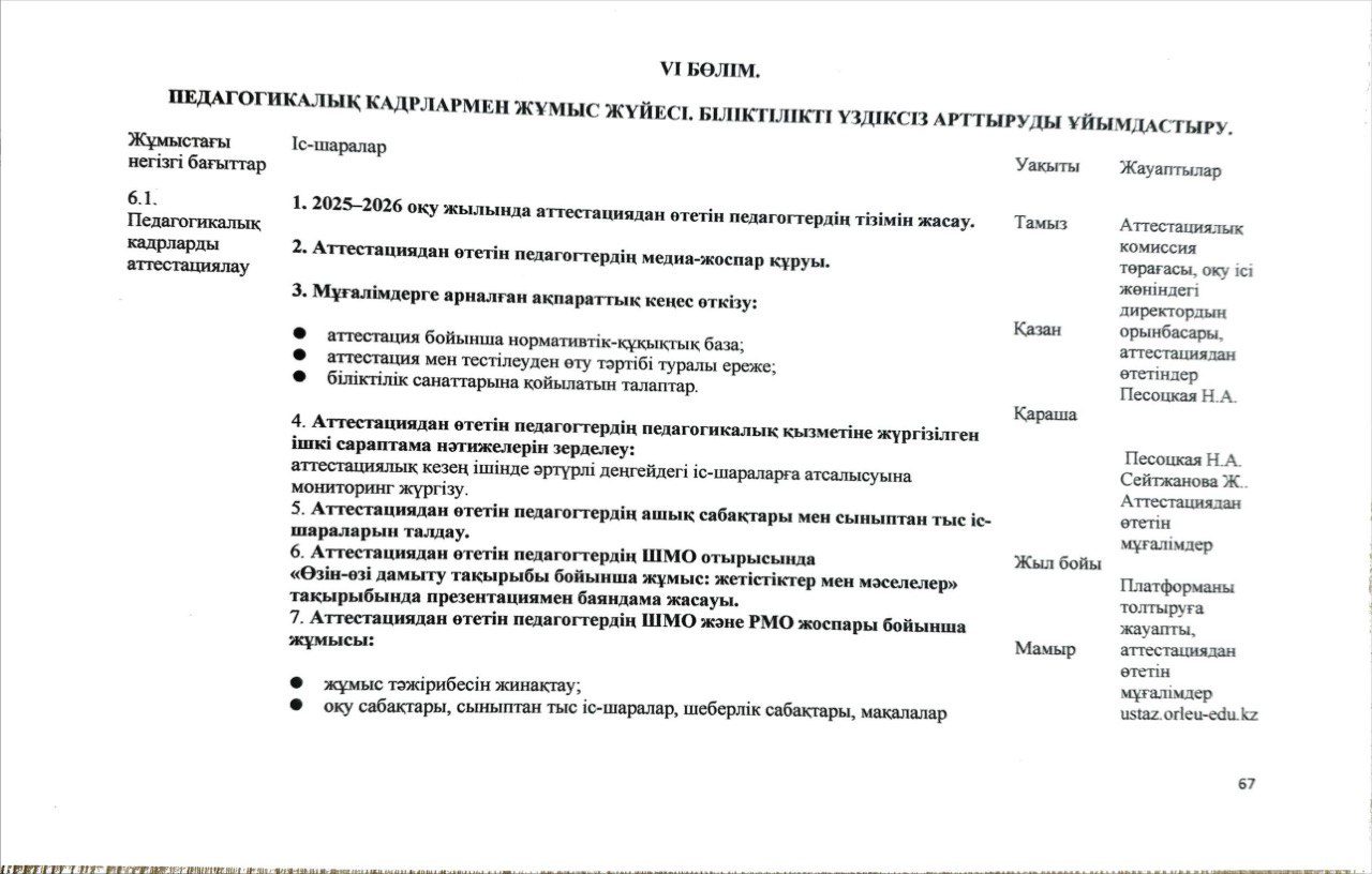 Педагогикалық кадрлармен жұмыс жүйесі 2025-2026 жыл