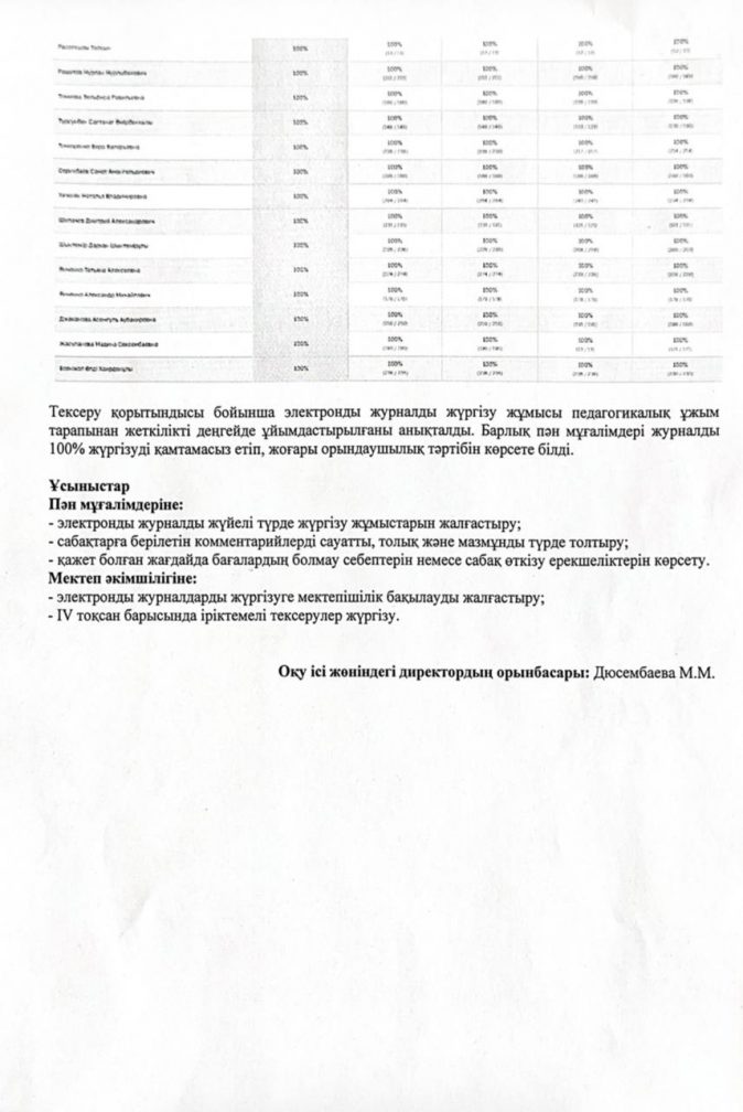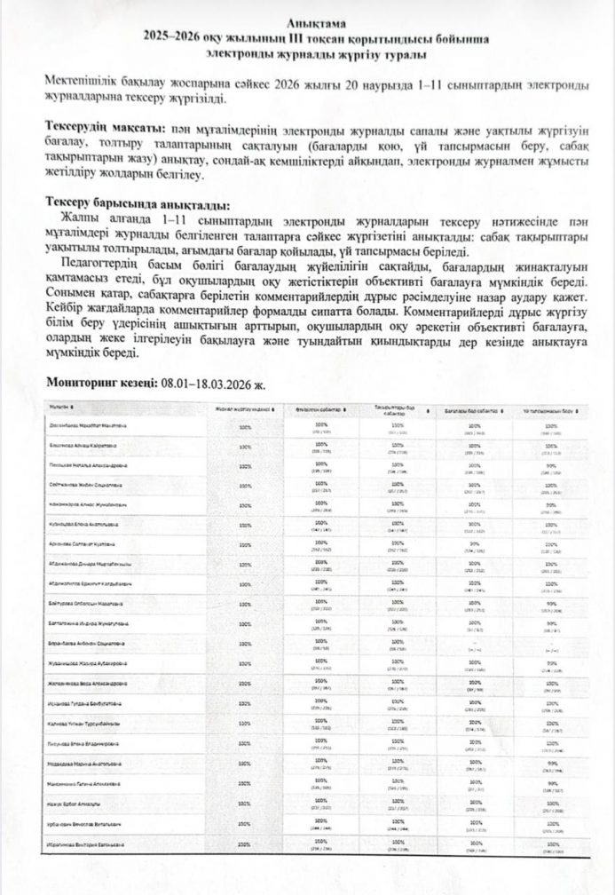 Анықтама 2025-2026 оқу жылының 3 тоқсан қорытындысы бойынша электронды журналды жүргізу туралы