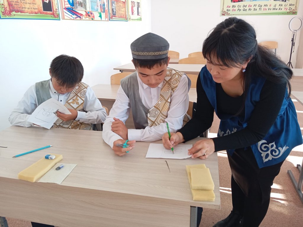 8 қазан күні Өнер апталығы қарсаңында мектепте 8 «А» сынып оқушыларымен шеберлік сабағы өтті. Оқушылар жүннен «қошқар мүйіз» қазақ оюы түріндегі брелоктар жасады. Әр қатысушы берілген оюдың нобайын өз бетінше салып, оны негізге түсірді. Сабақ соңында барлық қатысушылар тәтті сыйлықтар мен жағымды әсер алды.