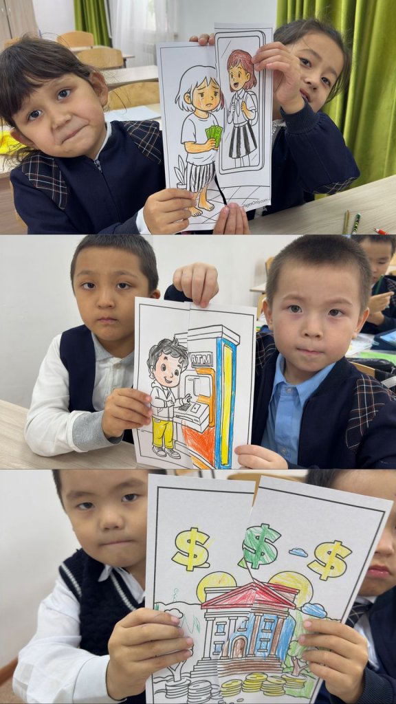 Оқушылар ұлттық валютаның ел өміріндегі маңызын түсінді, теңгенің түрлерін ажыратуды және ақшаға құрметпен қарауды үйренді.