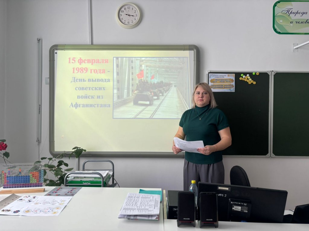 9Б сыныбында "Есте сақтау уақыттан күшті"тақырыбында сынып сағаты өткізілді. Сынып сағаты естелік күнге — Кеңес әскерлерінің Ауғанстаннан шығарылуына арналған. Іс-шара оқушылардың тарихқа құрметпен қарауын қалыптастыруға, Ауған соғысы оқиғаларын түсінуге, патриотизмге, азаматтық жауапкершілікке және әскери сынақтардан өткен адамдарға деген жанашырлық сезімін тәрбиелеуге бағытталған.
