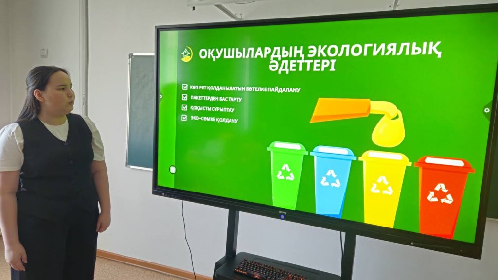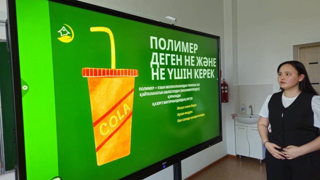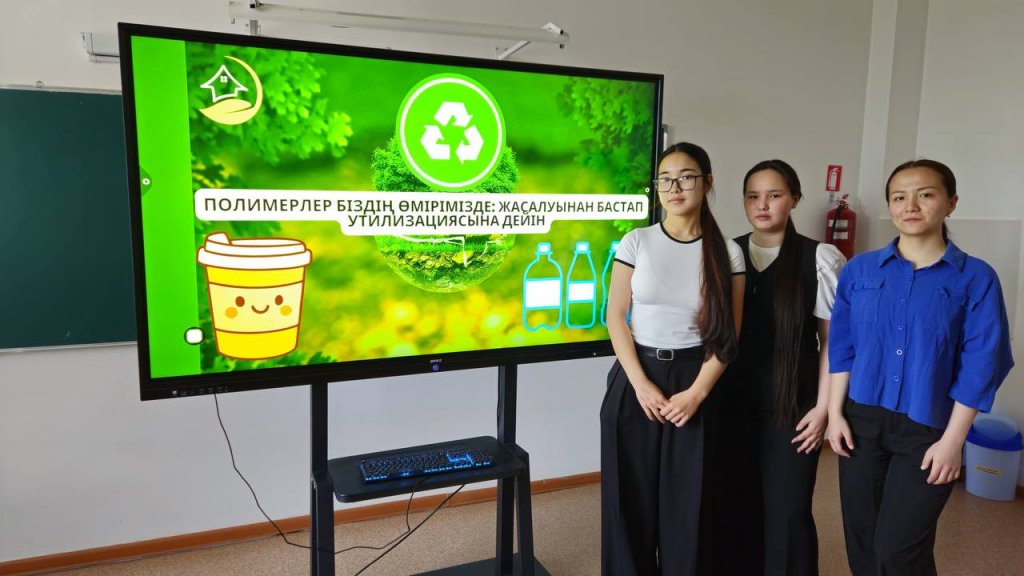 Бүгін 10А сыныбында «Полимерлер біздің өмірімізде: жасалуынан бастап утилизациясына дейін» тәрбие сағаты өтілді. Мақсаты: пластик өнімдерінің шығу тарихымен таныстырып, оны дұрыс қолдану, қоқысты дұрыс сұрыптауды үйрету.