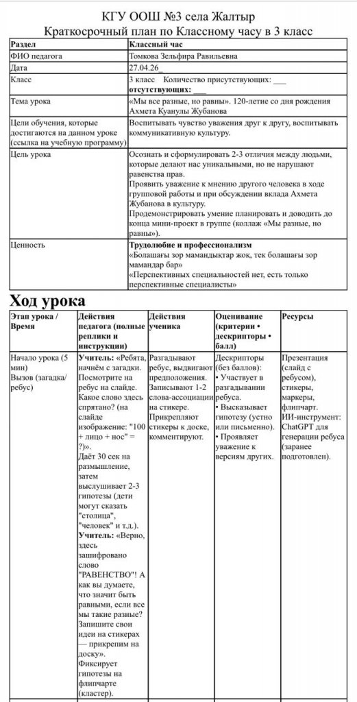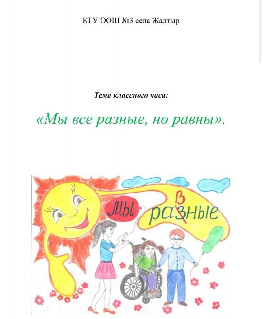 "Біз бәріміз әртүрліміз,бірақ теңбіз" сынып сағаты